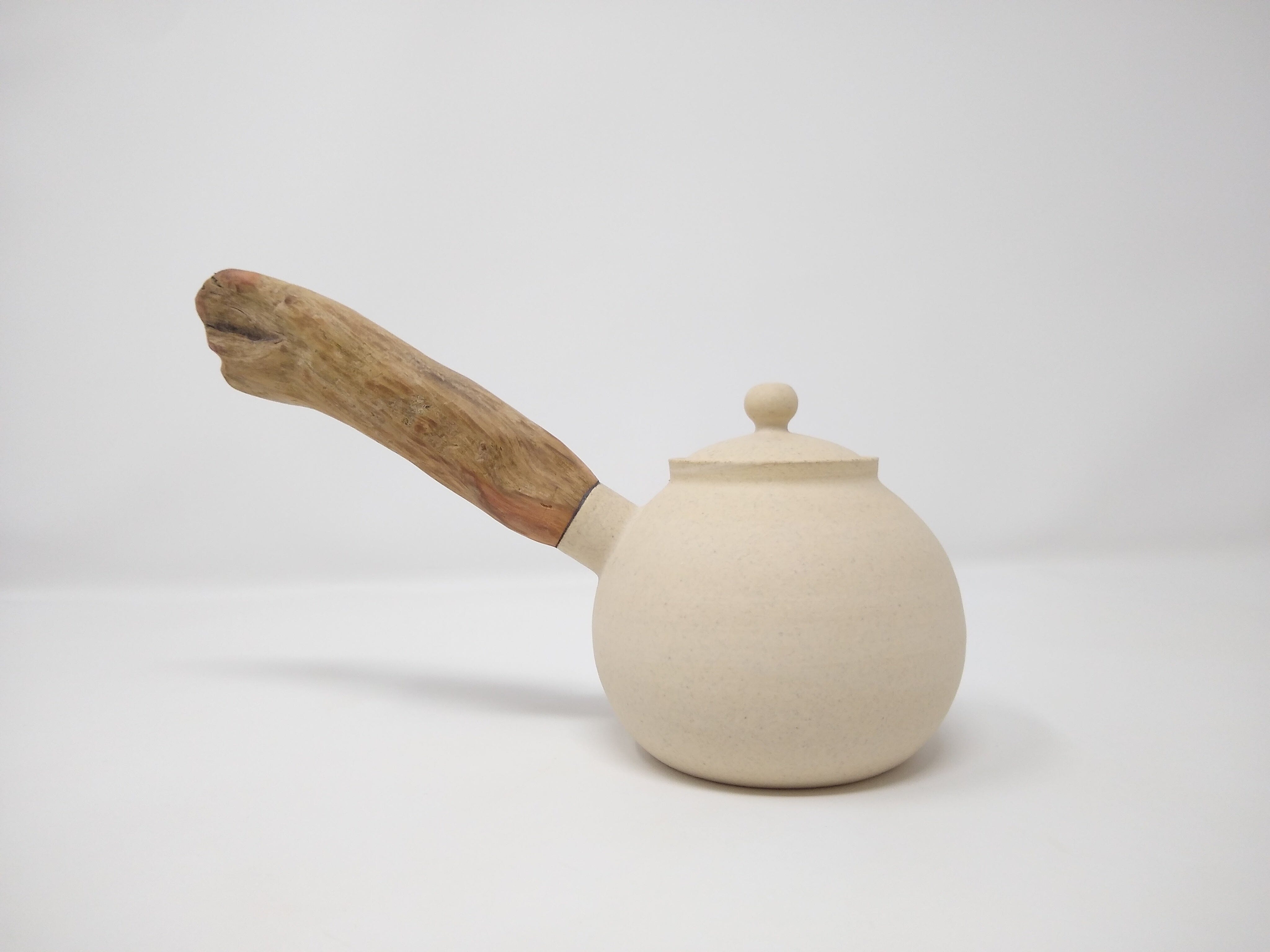 The teapot features a handle made from wood foraged from the forests surrounding Arturo's studio, adding a unique and grounded touch to each pour. With a volume of 340mL, it is ideal for serving 3-4 people, perfect for solo sessions or intimate tea moments.
