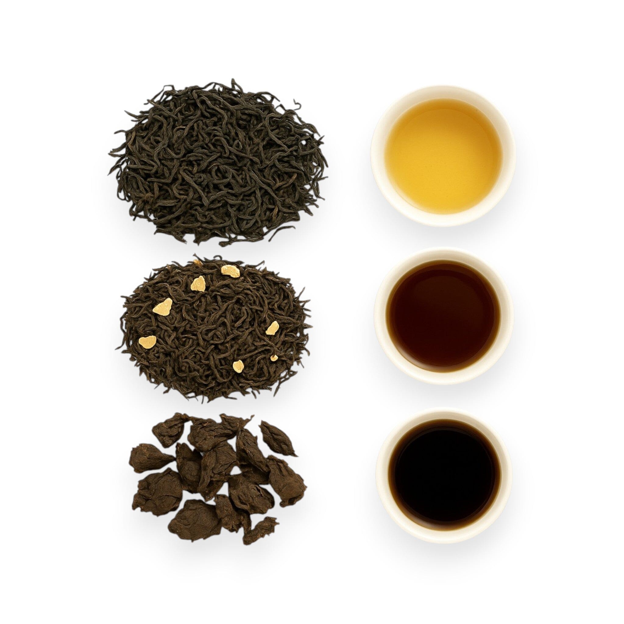 • Ananda (2oz) Ancient Tree Lao Cha Tou Ripe Puerh – Heavily fermented and made from compressed, juicy leaves, this tea supports digestion while instilling a sense of nourishment, grounding, and calm. It embodies the joy of stability, cultivating happiness and inner peace.